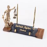 Ürün, 33x10cm ebatında kristal masif ayaklı isimlik ve themis heykeli ile beraber gönderilmektedir.