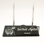 İsimlik üzerinde 2 adet tükenmez kalem ve ataç havuzu bulunmaktadır.