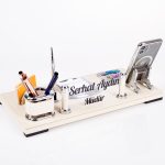 Masa organizeri üzerinde yer alan kalemlik üzerine logo işlemesi yapılmaktadır. Ürün görsellerinde bulunan (Polis, Avukat, Doktor, Jandarma, Muhasebeci, Veteriner Hekim,Eczacı vb.) logo çeşitleri arasından dilediğinizi seçerek sipariş oluşturabilirsiniz.