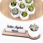Ürün beyaz beton saksılı sukulent ile gönderilmektedir. Sukulent demonte olduğundan isimlik haricinde de kullanabilirsiniz.