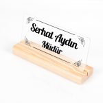 Ürün, 17x4cm ebatında doğaş ahşap stand akrilik isimlik ile beraber gönderilmektedir.