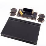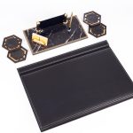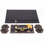 Ürün içeriğinde, 30×15 cm ebatında 10mm kalınlığında, kalemli ve kartvizitlik standlı ahşap isme özel organizer ve 4 adet bardak altlığı mevcuttur.