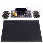 Hera Siyah Deri Sümen Takımı Gold Mermer Desen Ahşap İsme Özel Masa İsimliği İsimlik Seti