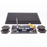 Ana sayfa » Masa İsimlikleri » Fox Siyah Deri Sümen Takımı Gümüş Mermer Desen Ahşap İsme Özel Masa İsimliği Masaüstü İsimlik Seti