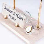 İsimlik bölümü 8mm kristal cam’dan üretilmekte olup, UV Baskı tekniği ile yazılmaktadır.
