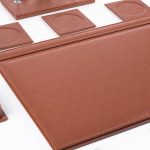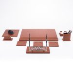 Ürün Bilgileri Sümen takımı, 7 parçadan oluşmaktadır. Ürün, kahverengi hasır desen deriden üretilmektedir. Sümen takımı beraberinde 8mm kalınlığında isim yazılı camı tutan çift kalemli deri isimlik pedi bulunmaktadır. İsim yazıları 1,6mm kabartma yazı ile yazılmaktadır.