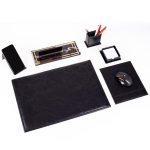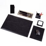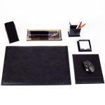Ravena Ofis Siyah Deri Sümen Takımı ve Ahşap Masa İsimliği Ofis Masa Sümen Seti ve İsimlik