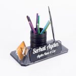 Ürün lastik figürlü kalemlik ile gönderilmektedir. Kalemlik demonte olduğundan isimlik haricinde de kullanabilirsiniz.