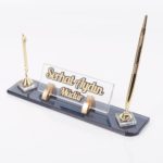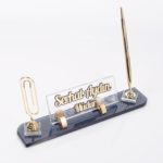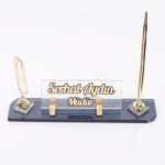 İnce Tasarım Kristal Masa İsimliği Kalemli Şık Ofis Hediyesi Masa üstü İsimlik Kalemlik