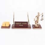 Ana sayfa » Masa İsimlikleri » Premium Maun Masa İsimliği Avukat Hakim Savcı Masa üstü İsimlik Pirinç Masif 3 Parça Adalet Heykeli