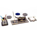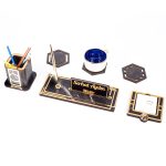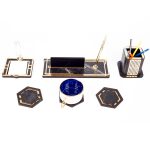 Set içerisinde ilave olarak ataçlı not kağıtlığı, kalemlik ve 3 adet bardak altlığı yer almaktadır.