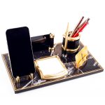 Masa organizeri üzerinde yer alan kalemlik, kartvizitlik, telefonluk ve not kağıt alanları masanızı düzenlemede yardımcı olacaktır.