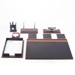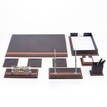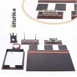 Ürün Bilgileri Sümen takımı , 7 parçadan oluşmakta ve deriden imal edilmektedir. Ürün, siyah renkte ve taba detaylardan oluşmaktadır. Sümen takımı beraberinde çift kalemli strafor, 8mm kalınlığında isim yazılı camı tutan deri isimlik pedi bulunmaktadır. Ürün kalemliğinde, 35mm gömme quartz saat bulunmaktadır. İsim yazıları 1,6mm kabartma yazı ile yazılmaktadır.