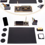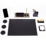 Santa Siyah Deri Sümen Takımı Lüks Şık Ofis Hediyesi Masa İsimlikli Sümen Takımı