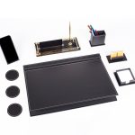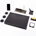 Premium Maun Masa İsimliği Bordo-Siyah Masa Sümeni Telefon Standlı Masa üstü İsimlik Pirinç 4 Parça