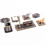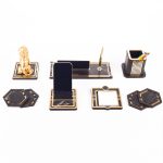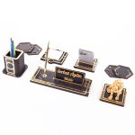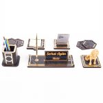 Set içeriğinde 12x12cm ebatında telefonluk, 12x12cm ebatında notluk, 4 adet bardak altlığı ve 10cm yüksekliğinde kalemlik bulunmaktadır.