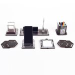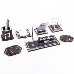 Set içeriğinde 12x12cm ebatında telefonluk, 12x12cm ebatında notluk, 4 adet bardak altlığı ve 10cm yüksekliğinde kalemlik bulunmaktadır.