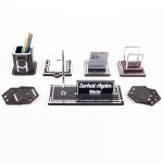 • Masa İsimliği üzerinde 2 adet kalem ve saat yer almaktadır. İsimliğin sağında heykel alanı ve sol kısmında kartvizitlik alanı bulunmaktadır.
