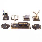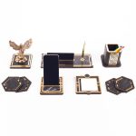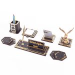 Set içeriğinde 12x12cm ebatında telefonluk, 12x12cm ebatında notluk, 4 adet bardak altlığı ve 10cm yüksekliğinde kalemlik bulunmaktadır.