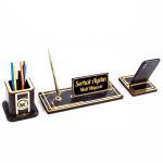 Star Gold Mermer Desen Kalemli Ahşap Masa İsimliği Hediye Masa Seti Ofis Masaüstü İsimlik Organizer