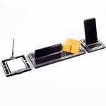 Milano Masa İsimliği Masaüstü Lüks Siyah Deri Ofis İsimlik Seti