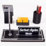 Alesta İsimlik Ofis Hediye Kalemlik Masa İsimliği Siyah Masa Seti